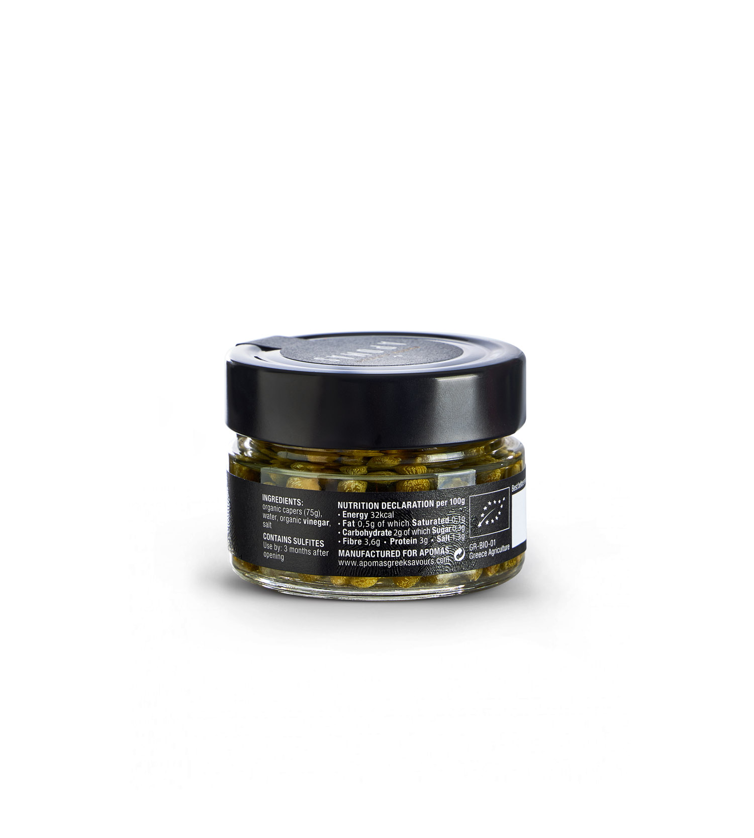 Με αυθεντική και γεμάτη γεύση, η βιολογική κάπαρη APOMAS καλλιεργείται στις Κυκλάδες και είναι το απόλυτο γευστικό στοιχείο στη σαλάτα και όχι μόνο! Φυλαγμένη σε ένα ιδιαίτερο βαζάκι με μαύρη ετικέτα και χρυσοτυπία είναι ένα από τα απαραίτητα στο ντουλάπι της μεσογειακής διατροφής!